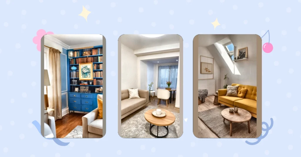 Thinking about home decorating can seem like a super grown-up task, but it’s really just about making your space feel totally you, even if “you” means a pile of clothes in the corner (we’ve all been there!). Look at how those cool, framed artworks add a touch of sophistication without being too stuffy – they’re like abstract emojis for your walls! And don’t forget the magic of a good coffee table setup. Those stacked books aren’t just for reading; they’re like little pieces of art themselves, showing off your interests (or at least making it look like you have them!). Adding small touches, from an interesting textured cushion to a tiny potted plant, can transform your space from “meh” to “marvelous” without needing a total room overhaul or winning the lottery.