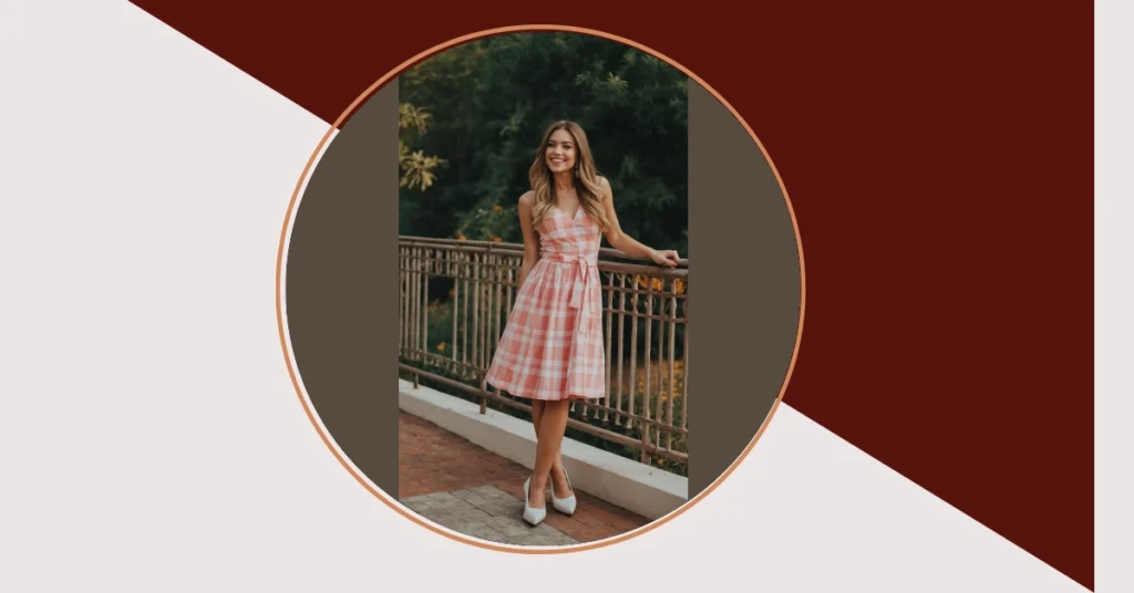 And check out our friend here, totally rocking this look! Her smile is as bright as those white checks, and those heels mean business, even if the dress whispers ‘I brought snacks.’ This gingham dress is incredibly versatile – perfect for looking effortlessly cool whether you’re grabbing coffee with friends, exploring a new spot, or just pretending you’re in a movie montage. Plus, who knew wearing a pattern that looks like a fancy chessboard could make you feel like the queen of everyday style?