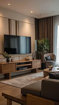 Who knew a TV wall could be this cool and save so much space? Looking at this awesome setup, you might think it’s magic, but it’s actually just really smart furniture designed for small living rooms. That sleek, built-in unit isn’t just showing off a giant screen; it’s also hiding all your wires, gaming consoles, and probably even that one remote control that always disappears! With shelves built right into the wall, you get to display your cool stuff without needing a bunch of extra bulky cabinets. It’s like your wall became a super-organized superhero, making your small space feel way bigger and totally zen.