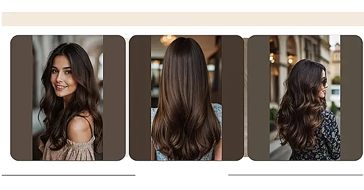 Looking at this picture, you can almost hear this rich brunette hair saying, “Yeah, I know I look good.” It’s got that perfect wavy thing going on, so glossy and full you half expect it to start sparkling. Seriously, it looks like it just walked out of a shampoo commercial, probably using some fancy product that costs more than my weekly allowance. You just know this hair has its life together, probably files its taxes on time and remembers everyone’s birthday.