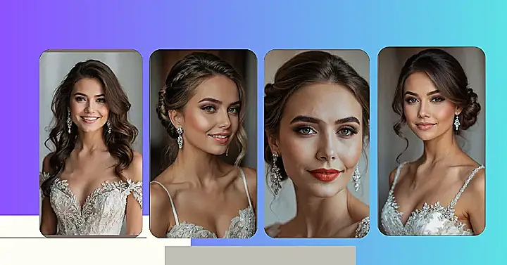 Peeking at this glowing bride, you can almost hear the wedding bells chiming! Her smile is sparkling, and so is her hair, which is probably a good thing because nobody wants a bad hair day on the biggest day ever. This amazing updo perfectly shows off her gorgeous dress and those blingy earrings, making her look like she’s floated straight out of a rom-com. It’s got that super romantic vibe that screams ‘love is in the air,’ and honestly, we’re here for it!