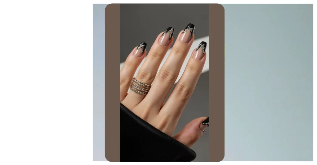 Forget boring mittens, because Winter 2025 is bringing serious sparkle to your fingertips! Check out these nails, rocking a vibe so cool they practically come with their own tiny invisible bodyguard. The deep black tips, paired with that fancy gold and silver shimmer, are like mini works of art that say, “Yes, I can build a snowman AND look totally glamorous doing it.” Plus, that little peek of natural nail? It’s like they’re winking at you, knowing they’re about to steal the show at every hot cocoa party or awkward family gathering.