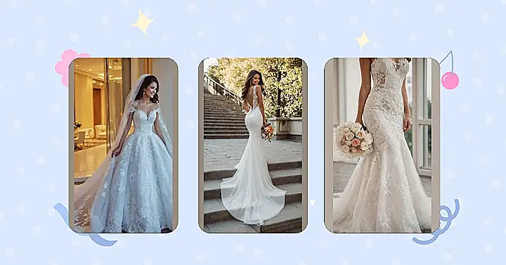 But if you were thinking ‘mermaid wedding dress,’ that’s a totally different vibe! Instead of a big, floaty skirt like this one, a mermaid dress is fitted all the way down and then flares out at the bottom, kind of like a fancy fish tail. It looks super glamorous, but trying to walk in one can feel like you’re attempting to swim on land. You probably won’t be doing any high kicks, but you’ll definitely make a splash… hopefully not literally!