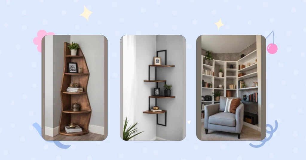 Forget those dull, straight shelves that look like they’re judging your life choices. These aren’t just any corner shelves; they’re the kind that actually *want* to hold your weirdest souvenirs, your stack of half-read graphic novels, or even just a cool rock you found. They’ve got personality for days, making even a tiny green plant look like a VIP on its own little podium. Plus, think about finally having a spot for all those random treasures that usually end up under your bed or piled on your desk. These shelves aren’t just practical; they’re basically inviting all your cool stuff to come hang out and look awesome together. Who knew a corner could be so cool?