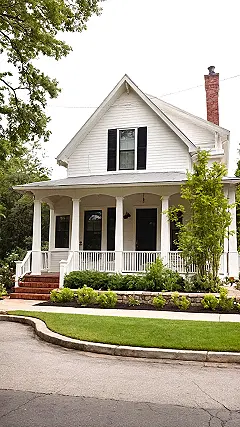This house looks like it jumped right out of a storybook, doesn’t it? All crisp white siding, those cool black shutters that look like they’re winking, and a porch just begging for some serious chill-out time. You can practically hear the porch swing creaking gently (even if there isn’t one there… yet!). If you were sketching out cottage house plans, this beauty would be on the top of your “must-have” list. Think about all the epic selfies you could take on those steps, or the secret agent missions you could plan from behind those perfectly manicured bushes. It’s got that classic charm but definitely looks ready for modern-day mischief!