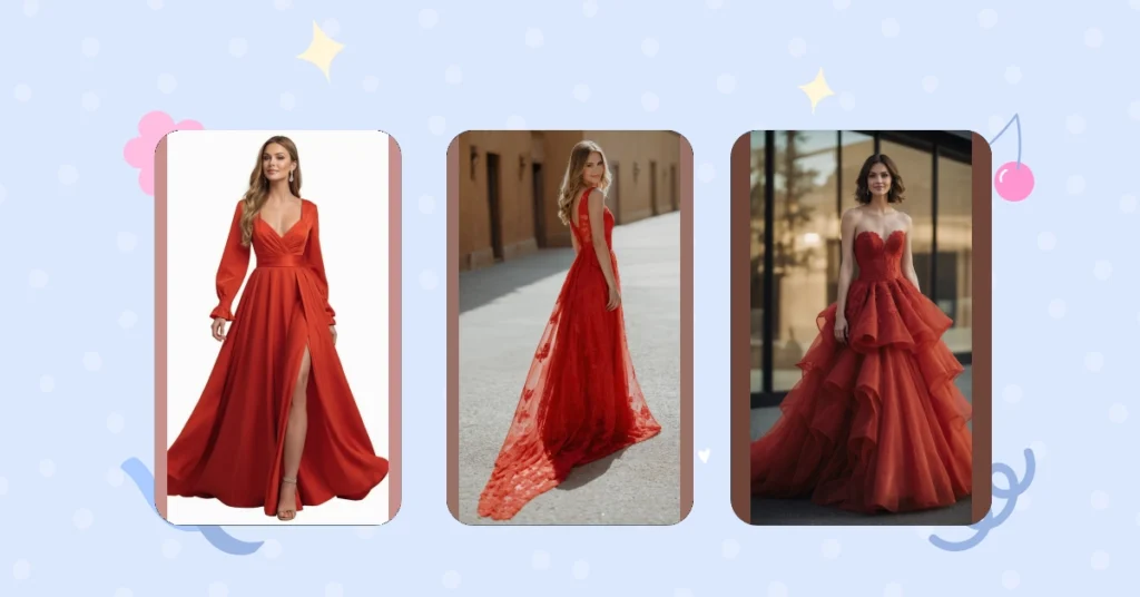 We all love a good ballgown that can sweep across the dance floor, right? A ballgown in a rich cherry color will sweep everyone off their feet while cramming an emotive punch of light. Plus, just imagine the photo opportunities—those lush reds will pop against any backdrop, turning your wedding album into a visual masterpiece. Trust me; you’ll want to show off that red in every snap!
