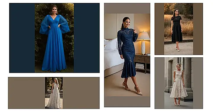 Oh, and sudden winter weddings! Although you might be thinking snowflakes and chilly air, think about rich fabrics and luxurious colors. A stunning black evening gown or a sophisticated brown ensemble can keep you warm and equally classy during the nuptials. Just imagine how fabulous you’ll look under twinkling fairy lights while basking in the romance of winter!