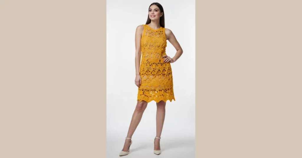Wearing this dress means you’re basically telling the world, ‘Yep, I’m here, and I brought the good vibes!’ The intricate patterns in this crochet-inspired number are totally eye-catching, making it perfect for looking effortlessly stylish whether you’re heading to a casual hang-out or a fancy-ish daytime event. Plus, with a color this cheerful, you might just find yourself accidentally making everyone around you smile. It’s the kind of outfit that says, ‘I’m ready for fun,’ and honestly, who isn’t?