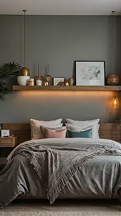 Now, post-makeover, stepping into my room feels less like navigating an obstacle course and more like a cozy hug. It’s got that peaceful vibe, kind of like that image with the plush bed you just want to dive into and those perfectly styled shelves holding actual objects, not just empty chip bags. My newly organized space is so awesome, I almost feel bad messing it up… almost. Wish me luck convincing my clothes they belong *inside* the closet now!