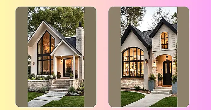 When someone says ‘tiny house,’ my brain usually conjures up images of a fancy shed on wheels, maybe with just enough room for a bed and a very enthusiastic potted plant. But then I see this absolute stunner, and suddenly my definition of ‘tiny’ feels like it just went to finishing school! This house is rocking those enormous, arched windows like a superstar, practically begging all the natural light to come flooding in. And seriously, look at that inviting entrance with the stone trim and glowing lights – it just screams, “Welcome, come on in and definitely don’t worry about bumping into walls, because we’re not *that* tiny!”