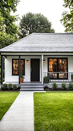 Check out this snazzy place! It’s rocking that cool modern farmhouse look with crisp white siding and sharp black trim, basically Instagram-ready from every angle. You might wonder if it’s a regular house or trying out for the next season of ‘Tiny House Nation.’ It looks so perfectly put together, like someone played architectural Tetris and won! This compact wonder probably has just enough room for your gaming setup, a comfy spot to binge-watch your favorite show, and maybe, just maybe, enough space for all your snack stashes. Don’t let its smaller footprint fool you; this place is serving up major style points.