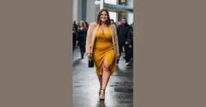 Okay, let’s talk about that dress. It’s black, it’s sleek, and it’s got a bow that probably ties itself because who has time for tricky bows when you’re trying to look effortlessly chic? This dress just screams, “I might be going to a fancy party, or maybe I’m just really good at walking dramatically down sidewalks.” It’s the kind of outfit that makes you feel like you could conquer the world, or at least get the best spot near the snack table at the party. Forget superhero capes; sometimes, all you need is a killer black dress to feel totally ready for anything, even if “anything” is just surviving another awkward family gathering.