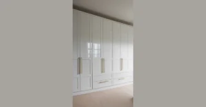 This kitchen looks so sleek and modern, it probably has its own social media following. With all that smooth wood and bright countertops, it feels like a showroom where you’d be scared to actually make a sandwich, let alone attempt something that might splatter. It’s the kind of place that makes your messy popcorn-making sessions feel like a crime against design. You can almost hear it silently judging your cooking skills, or lack thereof!