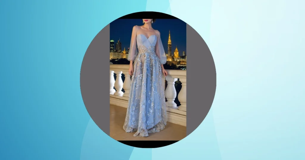 Getting ready for New Year’s Eve 2025? Forget wearing your usual comfy hoodie, because this gorgeous light blue gown is practically screaming ‘main character energy’ for the big countdown! With its flowy skirt covered in pretty flowers that almost look like they’re floating, and those super cool sheer sleeves, you’ll be turning heads faster than the ball drops in Times Square. Picture yourself gliding into the party, feeling totally elegant and maybe a tiny bit like a princess who just stepped out of a fancy movie, ready to conquer the new year with style and a whole lot of sparkle (thanks to those subtle little shiny bits!).