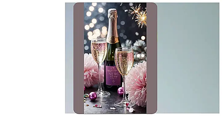 Time to give your phone a dazzling upgrade for the upcoming year! This picture is bursting with all the good vibes you need, featuring those gorgeous pink flowers, fancy bubbly drinks (imagine the epic sparkling cider you could pretend these are!), and even some fireworks just chilling in the background. It’s the perfect mix of glamour and fun, ready to make your screen feel like the biggest New Year’s Eve party ever, minus the awkward dancing.