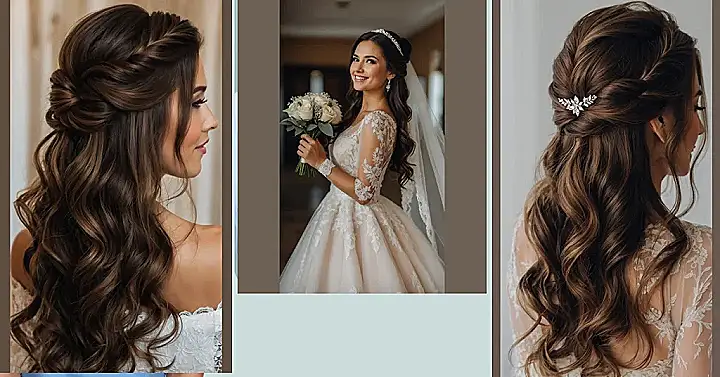 Let’s kick off this styling spree with medium-length hair! If you’re sporting this length, say hello to the magic of half-up styles that can turn your hair game up a notch. A soft, romantic middle part is a classic choice, and trust me, it’s all about those loose waves, which not only look stunning but are also perfect for hiding the nerves that come just before you walk down the aisle!