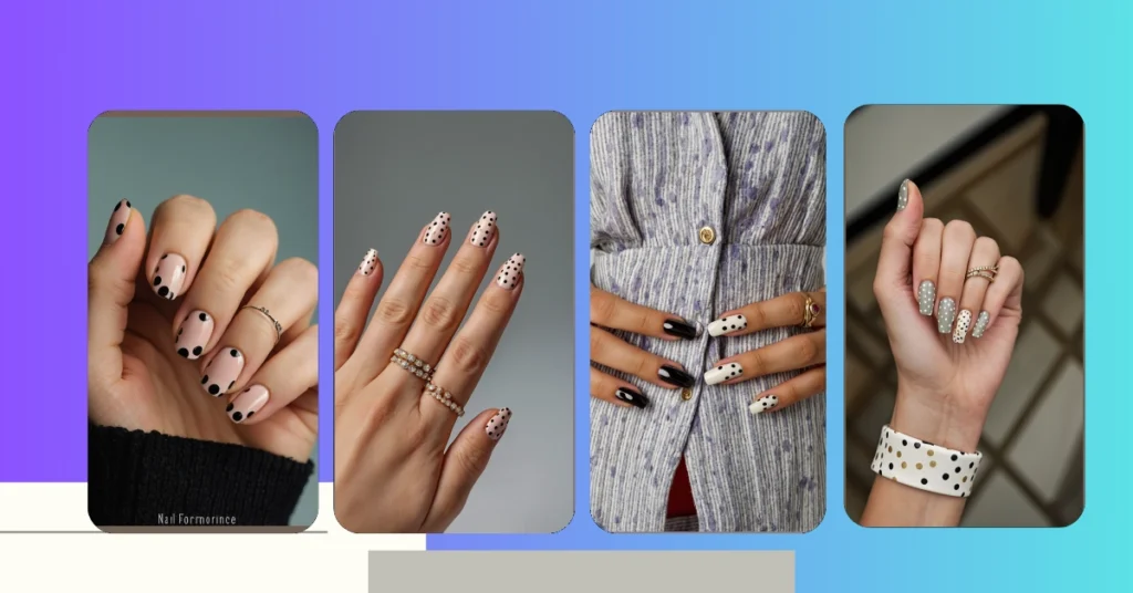 What makes these polka dot nails extra cool is how effortlessly they upgrade your look, whether you’re rocking a cozy sweater like the one in the picture (hello, comfy vibes!) or getting ready for something a bit fancier. They’re that perfect mix of timeless charm and playful personality that never goes out of style. Plus, who doesn’t love a good polka dot? It’s like a secret handshake for stylish people. So, if you’re looking for a fun, easy, and totally spot-on way to add some flair to your nails, these dotted beauties are definitely your next must-try!