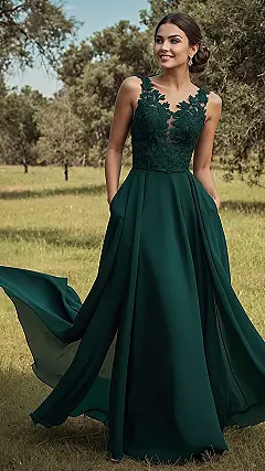 Check out this absolute showstopper, a truly classy gown that practically screams ‘red carpet ready, but also, like, kinda chill?’ This emerald green beauty flows like a dream, with intricate lace up top that makes you look instantly elegant. But here’s the kicker, the real mic-drop moment for anyone who’s ever worn a fancy dress: it has POCKETS! Yes, actual, functional pockets. Forget carrying a tiny clutch; you could stash your phone, a sneaky snack, or even a tiny unicorn in there. It’s like the designer heard every single complaint about formal wear and decided, ‘Not on my watch, ladies!’