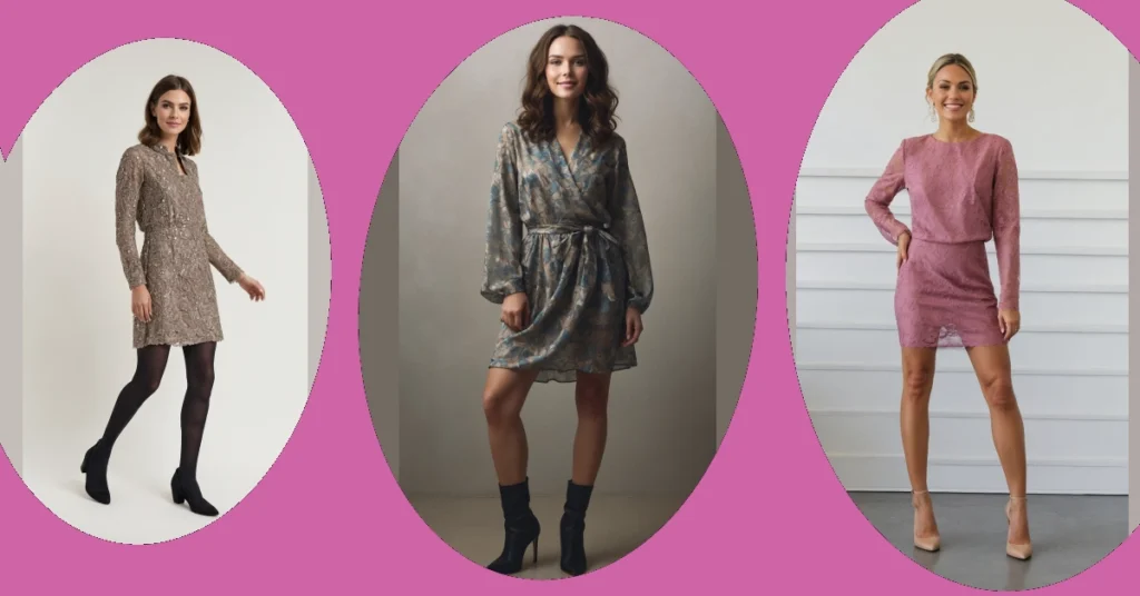 Getting ready for that event where you want to look amazing but also feel comfortable enough to actually, you know, *move*? This shimmering mini shirt dress has got your back! Picture yourself totally rocking the dance floor or just casually looking fabulous while grabbing snacks. The model looks so confident and ready for anything, and honestly, who wouldn’t feel like a superstar in a dress that looks this fun and fancy all at once? Pair it with some cool tights and boots like she did, and you’re set to conquer any night out with maximum sparkle and minimum fuss.