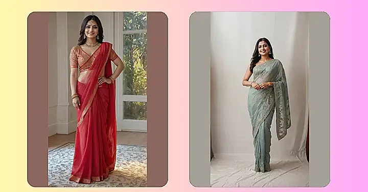 And can we talk about the entire outfit? The way that beautiful, flowing saree drapes with all its sparkly details is just perfection. It’s light and airy, probably super comfortable for dancing or just looking fantastic at a fancy party. With a saree blouse this cool, you could totally feel like a superstar ready to walk the red carpet, even if you’re just heading to a family event. It really shows how you can mix classic traditions with a modern twist to create a look that’s both elegant and super fun. Just try not to trip on the stairs looking this good!