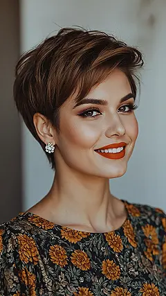 This bixie isn’t just a haircut; it’s practically a personality upgrade. Just look at how those bouncy, layered waves perfectly frame her face, giving off that ‘I’m effortlessly cool’ vibe. If you’ve ever battled with long hair in the morning, trying to make it behave for school or a video call, you know the struggle is real. The bixie cut swoops in like a superhero, saving you from bad hair days and making you look put-together with minimal fuss. It’s ideal for anyone craving a fresh look that’s bold but still super versatile, proving you can definitely have short hair and still be the reigning queen of cool. Say goodbye to split ends and hello to fabulous freedom!