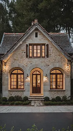 Feast your eyes on this absolute gem! Forget your standard brick boxes; this is a French cottage, which basically means it’s automatically ten times cooler. It looks like it was plucked right out of a fairytale book, complete with charming stone walls that probably keep all the good Wi-Fi secrets, and adorable little shutters that look ready to blink. Honestly, just looking at those cozy lit-up windows makes you want to grab a beret and immediately start looking for the nearest croissant shop.