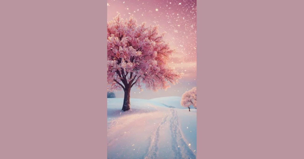 Tired of your phone wallpaper looking like last year’s homework? Get ready for a serious upgrade that’s basically a hug for your eyes! This picture is like Mother Nature decided to go all out with glitter and pink cherry blossoms in the middle of a winter wonderland. Imagine your iPhone screen glowing with this dreamy vibe – it’s the perfect mix of ‘girly’ charm and ‘ready for anything’ New Year energy, making your friends totally jealous every time you pull it out.