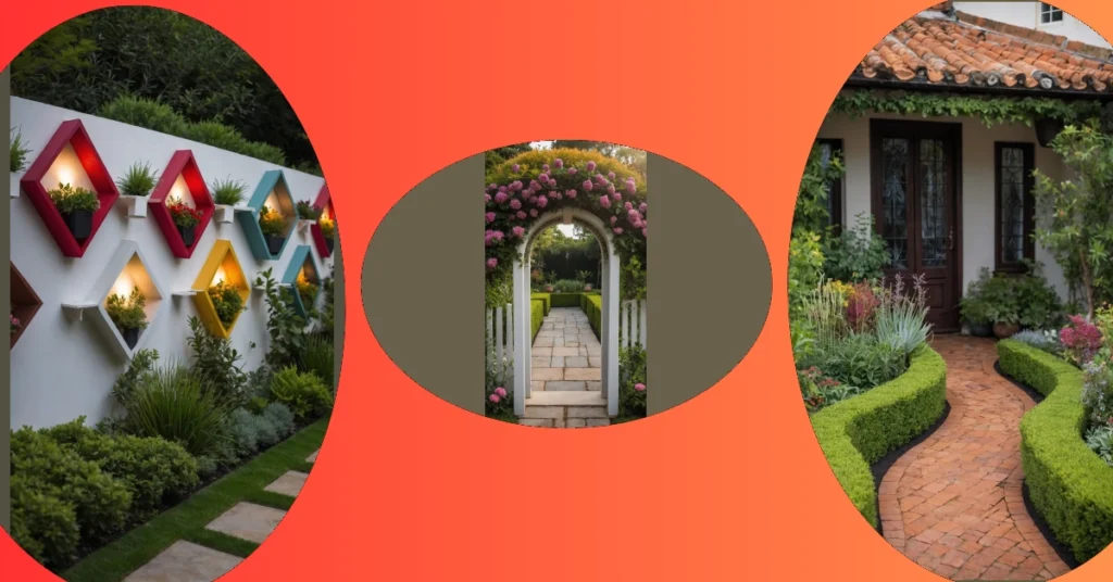 Beyond the superstar wall, the entire outdoor space continues the good vibes. Lush green plants spill out from the base, creating a soft, welcoming feel, while neat stepping stones practically invite you to stroll through and explore. This isn’t your grandma’s garden; it’s a modern masterpiece of outdoor gardens design that combines art, light, and nature into one seriously cool hangout spot. It shows how a little creativity can turn any plain old yard into a vibrant, friendly place perfect for chilling with friends or just enjoying some awesome greenery.