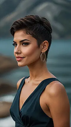 This cut is a total spotlight stealer for your face, just check out how it shows off those awesome earrings and killer winged eyeliner in the photo! It’s perfect for those days when you want to look put-together without, you know, actually putting *too* much effort in. Whether you’re acing a presentation, chilling with friends, or just trying to survive another Monday, a bixie cut means you’re rocking a stylish edge that’s always ready for whatever comes next – probably even a surprise pop quiz, looking fabulous the whole time!
