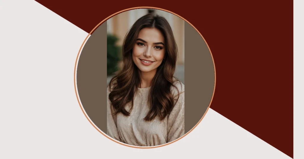 Looking at this picture, you might think “Wow, her smile is bright!” but then your eyes totally get lost in that amazing, rich brown hair color. It’s not just brown; it’s like a fancy chocolate milkshake on a good hair day, with perfect waves that look like they just rolled out of a salon commercial. Seriously, it’s so glossy and full, you could probably see your reflection in it if you got close enough – a tiny, impressed reflection, of course! This isn’t just hair; it’s a masterpiece that probably makes other hair feel a little jealous, wondering where it gets its perfect bounce.