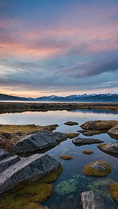 Wow, talk about a picture that just *gets* you! This isn’t just any old snapshot; it’s practically a masterclass in making nature look even better than it already is. Peep that sky, glowing like someone spilled a giant tub of strawberry and blueberry ice cream across it – absolutely stunning! And the way the water is so clear you can see right to the bottom, with those cool rocks chilling out like they’re on a spa day. You can totally tell this is the work of amazing Danish photography because they always seem to capture these ‘pinch me, I’m dreaming’ moments where everything just feels perfectly balanced, even if it’s just a bunch of rocks.