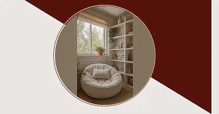 This isn’t just a chair; it’s a fluffy, white cloud daring you to sink in and never leave. One look at that giant, marshmallow-like seat and soft blanket, and you just know you’ve found the ultimate escape pod. It’s the kind of spot where you can dive headfirst into a thrilling new novel, completely forget about your chores, and maybe even lose track of what day it is. With a bookshelf stacked high with amazing stories right beside it, this cozy corner is practically shouting, “Hey, bookworm, your perfect reading nook is calling!”