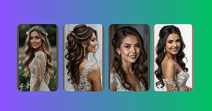 Get ready to fall head over heels for this autumn wedding hairstyle, because it’s basically what happens when elegance meets a really good hair day! Those gorgeous, bouncy curls with all their golden-brown highlights look just like the most perfect pile of autumn leaves, but way more organized and fancy. And that half-up style? It’s genius! It keeps those pretty strands out of your face for all the important stuff, like catching the bouquet or making sure you don’t trip while walking down the aisle, all while letting your stunning length shine.
