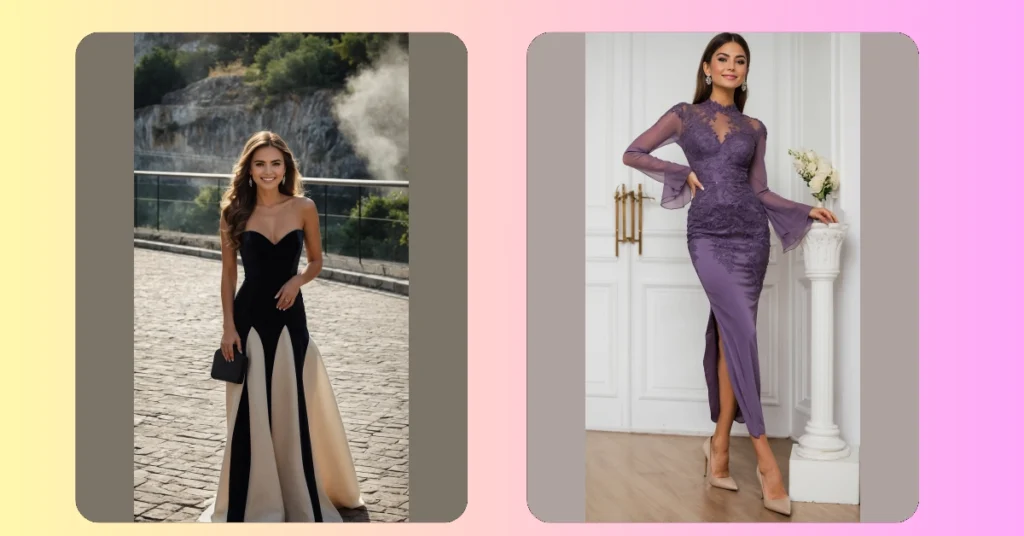 Our model looks like she just won the lottery of confidence, rocking this dress with a smile that says, “Yeah, I look this good.” It’s the kind of classy outfit that could make even the wedding cake a little jealous. So, whether you’re planning to be the chicest wedding guest or just want to feel like a million bucks (and maybe make everyone wonder if you’re the secret star), this dress proves that ‘classy wedding attire’ doesn’t always have to be white to be absolutely show-stopping.
