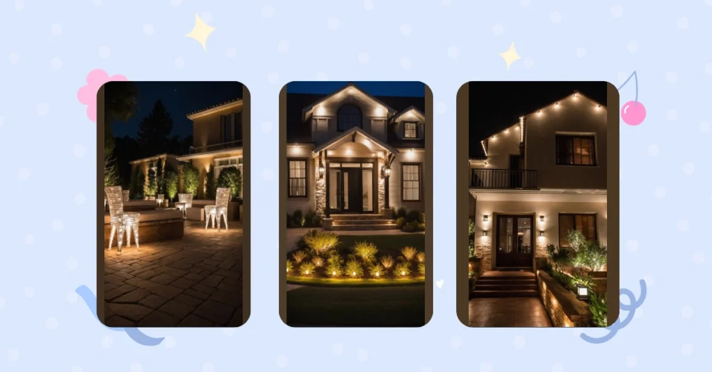 The house in this picture looks like it’s ready to host the coolest December party or at least win the neighborhood light-decorating contest, hands down! Those sparkling lights on the tall trees aren’t just pretty; they’re practically screaming, “Welcome, brave souls, to our cozy abode where hot cocoa flows freely!” With all those fancy outdoor lanterns and the clever little pathway lights, you definitely wouldn’t trip on your way to the door, even if you were trying to sneak back in after curfew. It’s the kind of entrance that makes even the grumpiest grinch crack a tiny smile and maybe even wonder if they left their own porch light on.