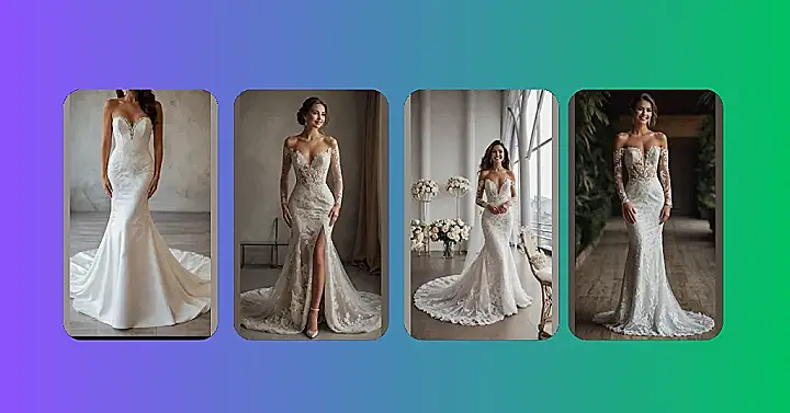 This bride is seriously serving looks in her mermaid-style wedding dress, rocking a smile that could light up a whole stadium! With that stunning lace, off-the-shoulder sleeves, and a train that probably has its own zip code, she’s definitely ready for her big debut. You might wonder how a dress can look so perfectly fitted, like it was painted on – well, that’s where the secret weapon of a corset comes in, making sure everything is cinched and fabulous for an absolutely unforgettable walk down the aisle.