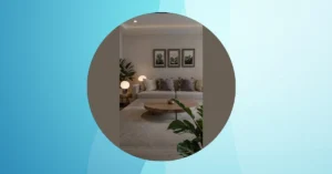 But wait, there’s more to this cozy kingdom than just the bed of dreams! Look at the soft lights from that cool chandelier and the gentle colours that make everything feel calm and peaceful. There’s a comfy chair just begging you to curl up with a book (or your phone, let’s be real) and a fuzzy rug that feels like walking on sunshine. It’s your personal escape pod from the outside world, a spot so chill you might actually hear the silence. Seriously, this room is basically saying, “Welcome, weary traveler. Abandon all stress, ye who enter here.”