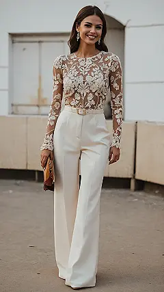 Now, for the MVP of this New Year’s Eve 2025 look: those incredible wide-leg pants! Forget about having to suck it in all night, or worse, getting stuck trying to do a cool dance move because your outfit is too restrictive. These beauties are basically fancy cloud pants – super comfy, super stylish, and perfect for loading up on all the appetizers without any judgment from your waistband. The crisp white color is like a fresh start for 2025, saying ‘I’m ready for anything, even if it means comfortably chilling while everyone else is still debating their resolutions.’ So go ahead, conquer the dance floor or just chill with your friends looking effortlessly amazing, because these pants have got your back (and your legs)!