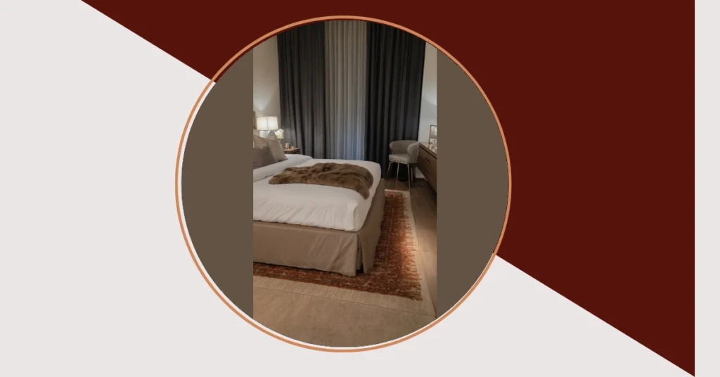 Our detective skills tell us the ‘rose petals decor’ might still be in transit, or perhaps this room is the ultimate ‘before’ picture, just waiting for its grand petal debut! Maybe the idea is to let you pick out your *own* rose petals, giving you full creative control over your romantic vibe. Either way, this super stylish space, complete with that awesome patterned rug and chic chair, is totally ready to embrace whatever level of romantic or chill you’re going for. Just remember to add the petals yourself if you want that full, keyword-matching experience – or just enjoy the amazing fur blanket and pretend it’s a giant, cuddly rose.