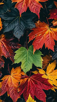 Looking at this picture, you can almost hear the crunch of autumn leaves underfoot, even if they’re just chilling on your screen. These leaves are basically showing off, right? We’ve got fiery reds, sunny yellows, and deep oranges all having a vibrant party, with that one brave green leaf trying its best to fit in, probably whispering, “Don’t mind me, I’m just here for the snacks!” It’s like nature decided to throw all its best colors onto the ground, knowing someone out there needed a seriously cool new fall wallpaper for their iPhone.