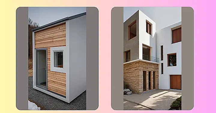 But hey, architects totally nail it to make these small spaces look awesome, just check out places that look like this cool stack of blocks! See how they use different textures, like the stone on the bottom and smooth white walls up top? And those big windows aren’t just for creepy window staring; they let in tons of light so your micro house feels way bigger than it actually is. It’s proof you don’t need a mansion to have a place that looks super sharp and makes you feel like you’ve got room to breathe… even if you’re sleeping in a pull-out drawer.