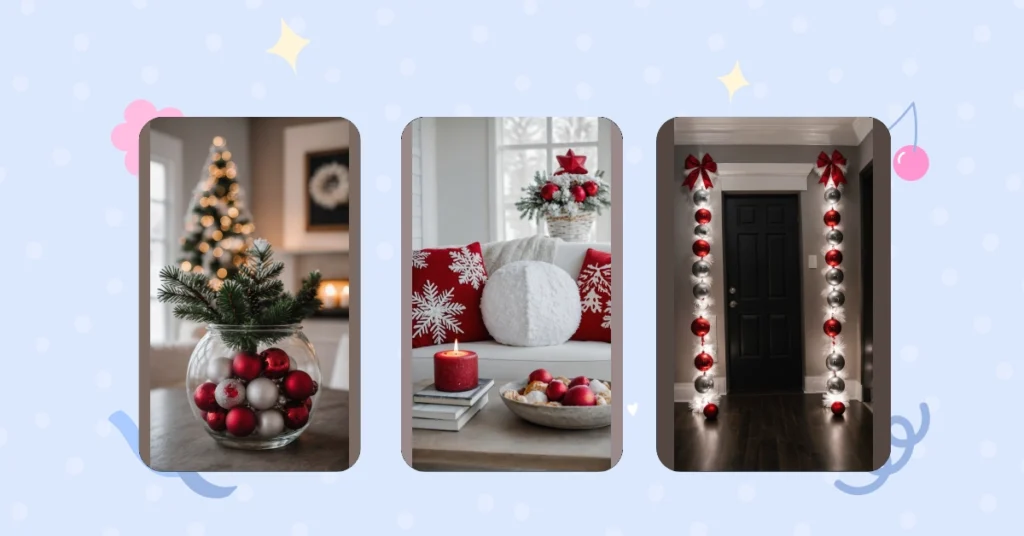 This isn’t just about dumping pretty baubles into a dish; it’s about channeling your inner interior designer without all the stress. See how the background here has those super dreamy, fuzzy Christmas lights? Your DIY ornament bowl captures that same magical vibe, making your room feel like a warm hug on a chilly day. You can totally customize it too: maybe add some tiny fairy lights inside, or swap out the red and silver for your school colors (if they happen to be festive!). It’s proof that sometimes, the coolest winter room decor is just a bowl, some bling, and a little sprinkle of your own creative genius. Who knew making your room look amazing could be this easy and fun?