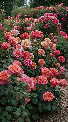 Step right up to this rose garden, the ultimate spot for flowers who think they’re famous. These roses in pink and peach are basically posing 24/7, totally ready for their close-up. It’s less of a garden and more like a gigantic outdoor runway where every single bloom is trying to out-pretty the next one. They’ve got this whole area locked down with sheer petal power, making everyone else look like they just rolled out of bed.