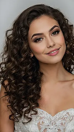 Planning a big day can feel like a whole adventure, and your hair should be part of the fun, not another thing to wrestle! Look at this bride; her natural curls are just living their best life, flowing perfectly and looking effortlessly gorgeous. It’s like her hair whispered, “Nope, not dealing with straighteners or weird updos today, I’m fabulous just the way I am!” Embracing your natural waves for a wedding means less time stressing about frizz and more time dancing with your future spouse. Plus, those curls are totally adding extra sparkle next to that awesome flower and headband situation!