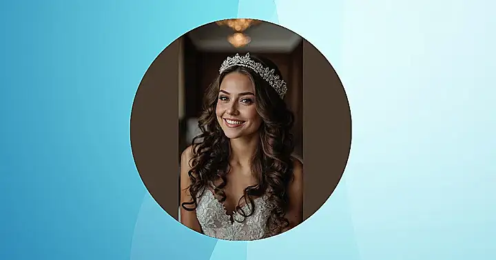 Planning a big day can feel like a whole adventure, and your hair should be part of the fun, not another thing to wrestle! Look at this bride; her natural curls are just living their best life, flowing perfectly and looking effortlessly gorgeous. It’s like her hair whispered, “Nope, not dealing with straighteners or weird updos today, I’m fabulous just the way I am!” Embracing your natural waves for a wedding means less time stressing about frizz and more time dancing with your future spouse. Plus, those curls are totally adding extra sparkle next to that awesome flower and headband situation!