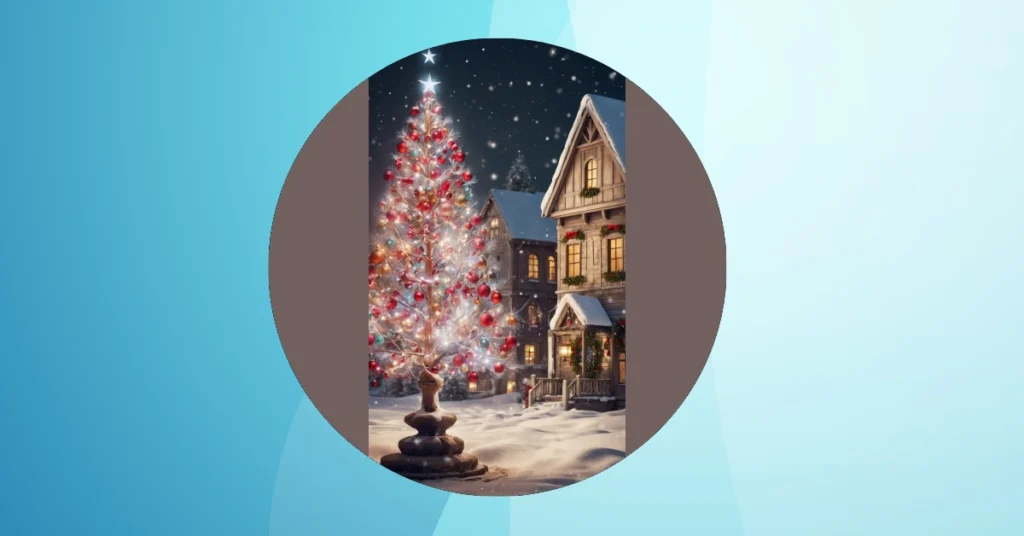 This picture is practically begging to be your next ‘festive wallpaper,’ turning your screen into a full-blown holiday headquarters! Check out those adorable, snow-dusted cabins, all glowing warm and cozy like they’re baking a mountain of cookies inside. And that giant Christmas tree in the center? It’s so ridiculously decked out, it looks like it won an award for ‘Most Enthusiastic About Christmas Decorations.’ It’s definitely giving ‘Netflix and hot cocoa’ vibes, even if you’re just scrolling through your apps.