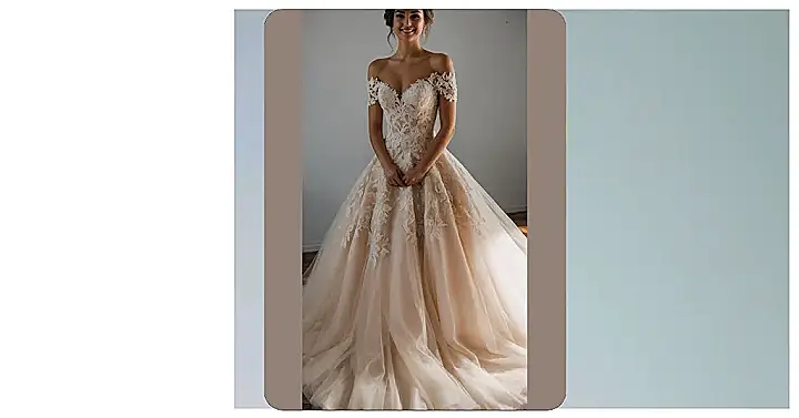 Wearing a dress this stunning, with its lovely off-the-shoulder details and a skirt that could host a small party, you’d basically be glowing like a human trophy. Forget a gold medal; this outfit is the ultimate prize, making you feel like a million bucks while trying to figure out how to sit down without crushing any of the fabulous layers. It’s the kind of dress that makes everyone wonder if it comes with a tiny, built-in fan to keep you cool under all that golden glamour!