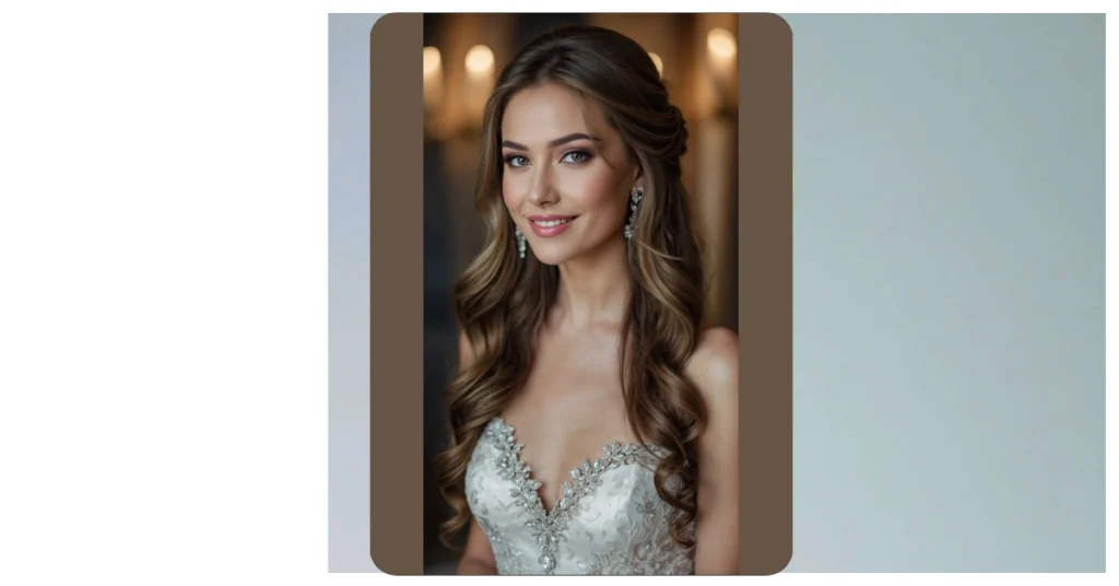 And it’s not just the hair! Her whole look, from those sparkling earrings to that radiant smile, shows she’s ready to walk down the aisle feeling like a total superstar. This isn’t just a pretty style; it’s an entire mood that says, “Yes, I’m getting married, and yes, my hair is going to stay this fabulous even after hours of dancing and possibly some emotional crying.” It’s proof that a little bit of glam, especially with hair that flows like a dream, can make any big day feel truly unforgettable and look absolutely stunning.