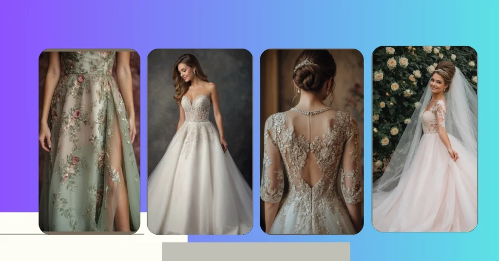 Look at all those dreamy layers of tulle and the delicate lace flowers twirling down the skirt! It’s like a fairytale, but with an extra sprinkle of fun thanks to that subtle hint of color. Choosing a colored wedding dress, like this soft, elegant design, means you’re basically telling the world, “My wedding, my rules, and yes, I’m this fabulous!” You get to dance all night feeling like a total queen without the pressure of being perfectly pristine. It’s a win-win: you look stunning, feel comfortable, and get to shine in your own special hue, proving that colored wedding dresses are definitely the way to go for brides who love to stand out.