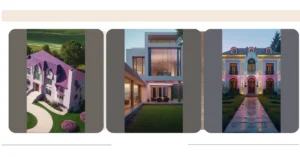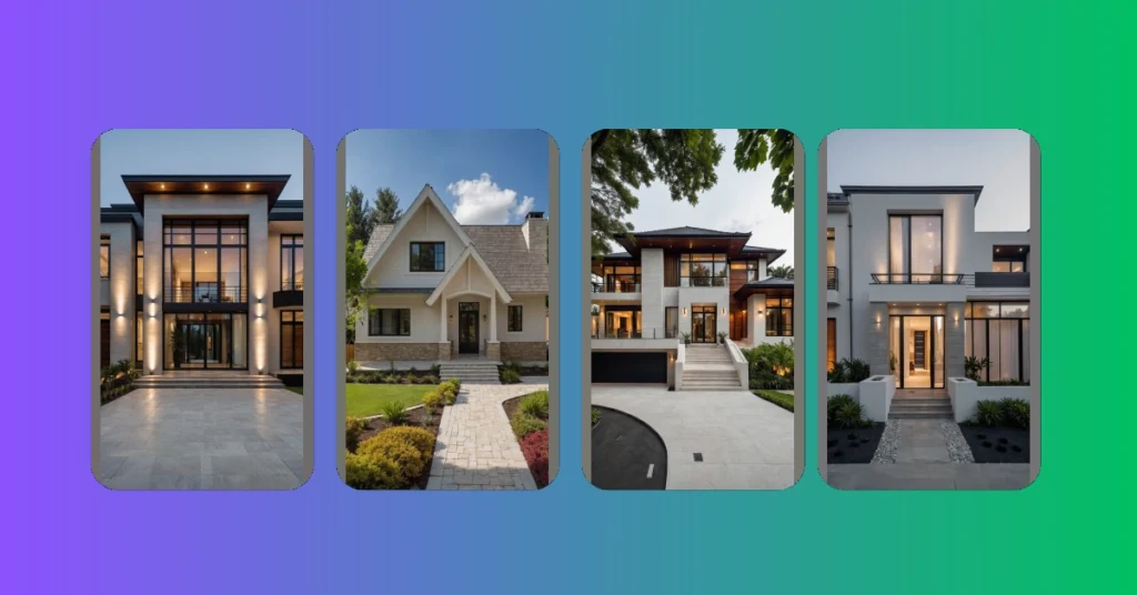 And check out the landscaping – those neat little bushes and the glowing path lights are basically saying, “Welcome to my perfectly curated existence.” This isn’t your average cookie-cutter house; it’s got personality and elegance, blending classic grandeur with a totally fresh, modern twist. It’s the kind of stylish home that makes you wonder if the people living there are secretly superheroes, or just really, really good at choosing paint colors. With its sharp rooflines and bright exterior, it’s proof that modern architecture doesn’t have to be all glass and steel – it can be a cozy castle that’s also totally Instagram-worthy.